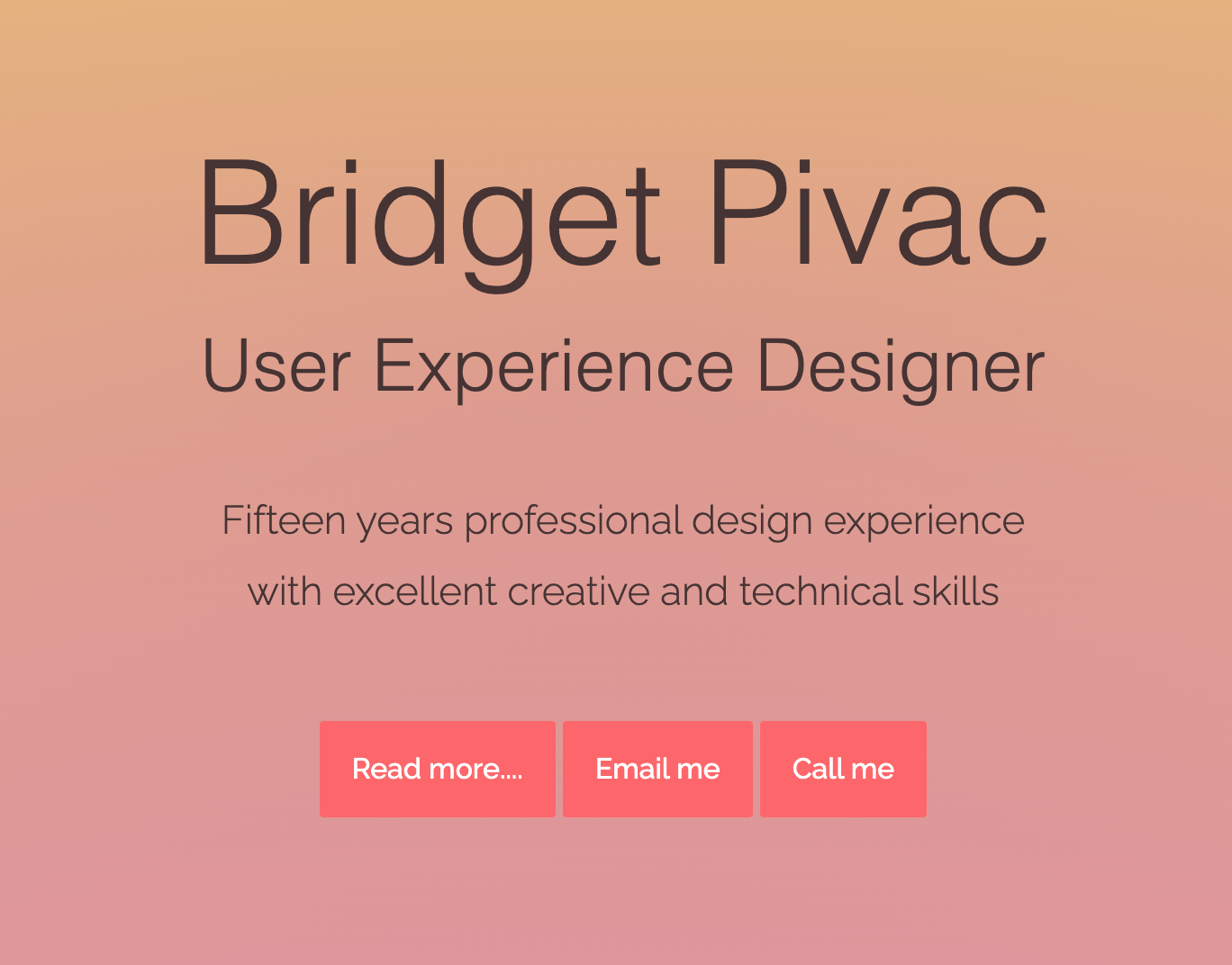A portfolio website built according to the design provided by the client, UX designer Bridget Pivac.